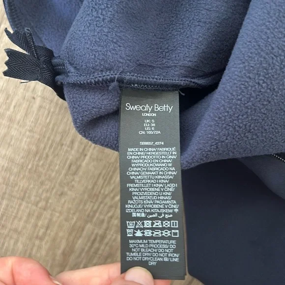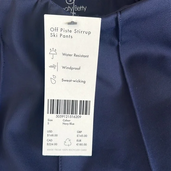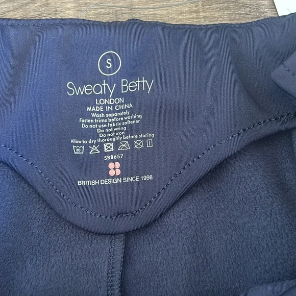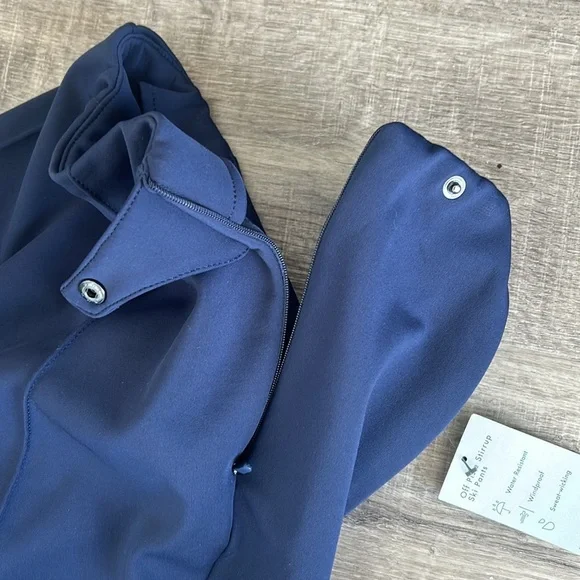 Brand new never worn A soft fleece lining warms high-waist ski pants cut from a breathable, water-resistant fabric and finished with stirrup hems to keep your slope look sleek. 30" inseam Water-resistant Lined 87% polyester, 13% elastane Machine wash, dry flat ImportedBrandSweaty BettyColorNavy BlueBox20