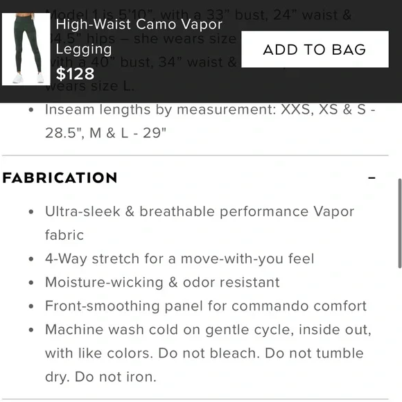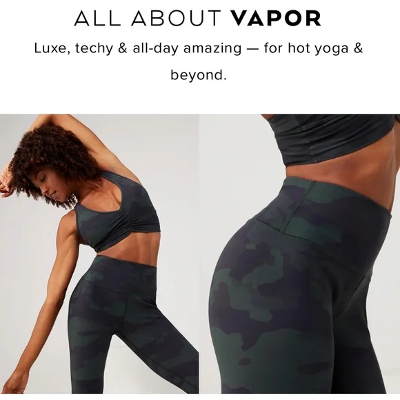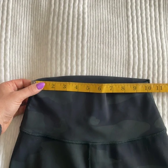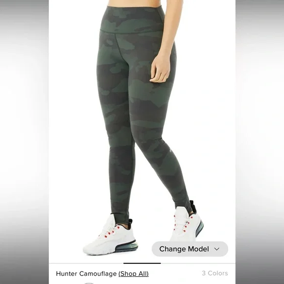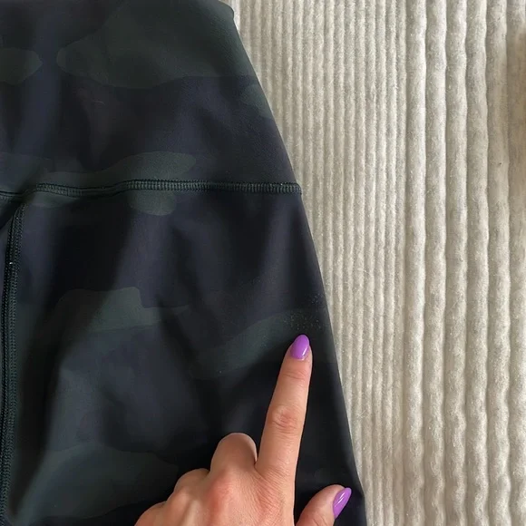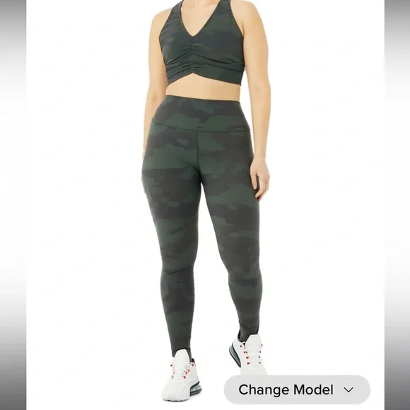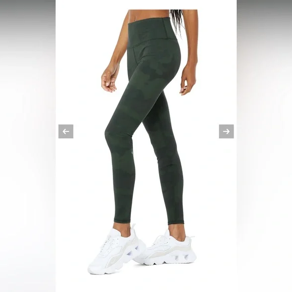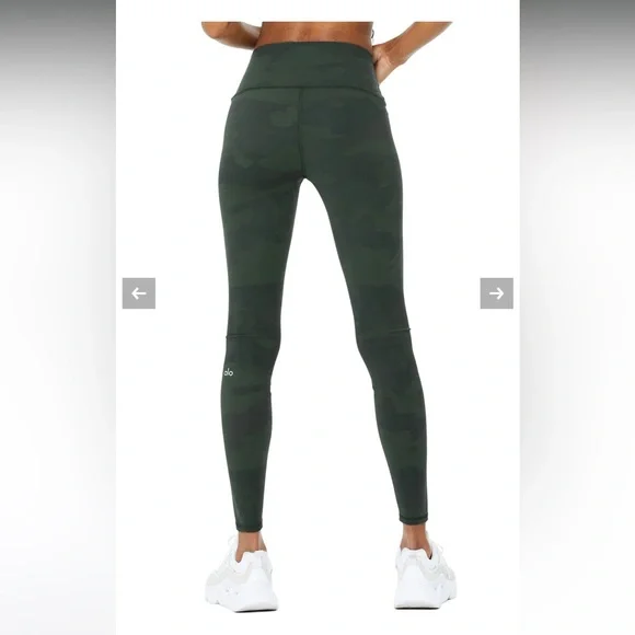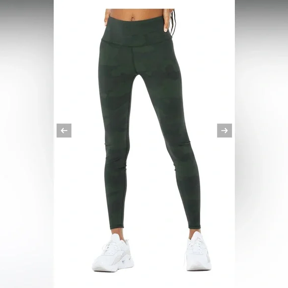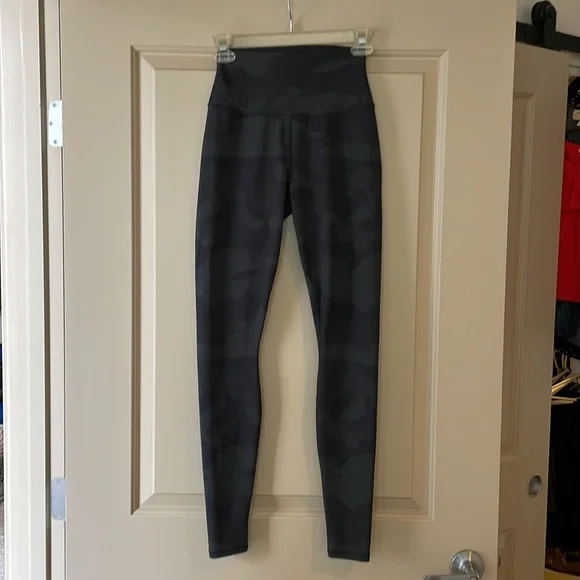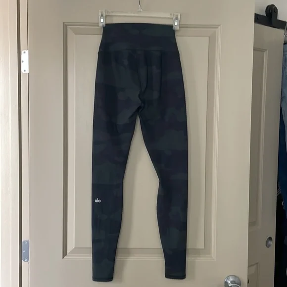 Like new ALO High-Waist Camo Vapor Leggings in Hunter green.These leggings are gorgeous and fit like a dream.All measurements in photos and descriptions.Small pilling on back right buttocks but not noticeable. Picture included of piling. Otherwise there is no rips, stains, tears etc.Size: XSColor: green camo print