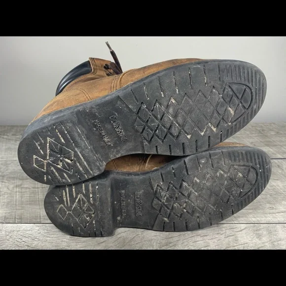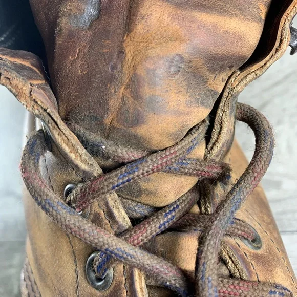 Up for sale is a good condition pair of Red Wing 2367 Men's Brown Leather Rubber Neck Work Steel Toe Boots. Size 8 D, medium. Made in USA! Leather uppers. Rubber soles. From smoke-free home. Clean inside and out. Very well built and sturdy. Approximate Outside Dimensions: 11.25 inches heel to toe by 4.25 inches across the ball of footwear by 1.25 inches tall heels by 6.75 inches tall by 9.5 inches inside heel to toe.