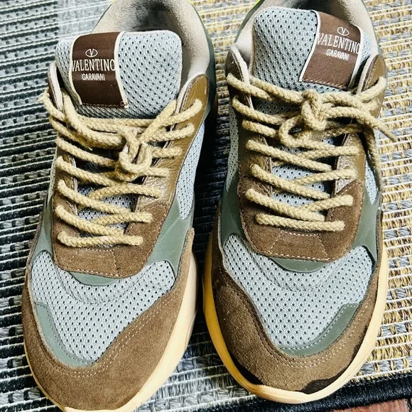 UsedCondition 9/10🔥 Experience the perfect blend of style and comfort with Valentino Garavani's sneakers, featuring a sophisticated brown and gray color palette. These low-top sneakers boast a chunky, retro-inspired silhouette, crafted with premium materials for a modern yet timeless look. Ideal for casual outings, they offer a unique combination of elegance and trendiness.
