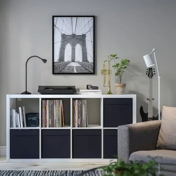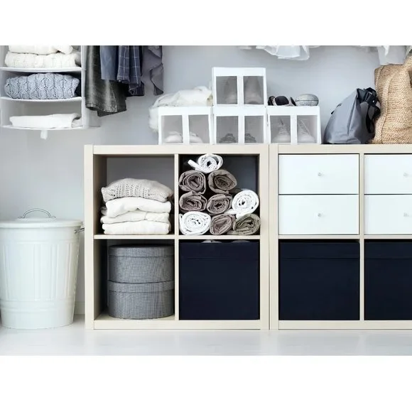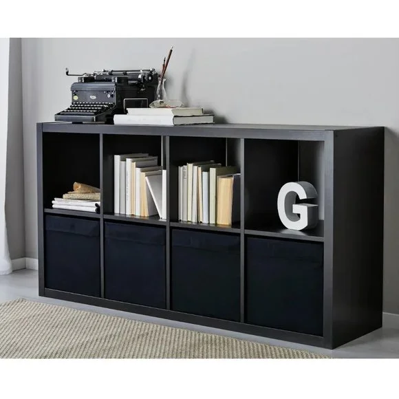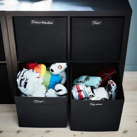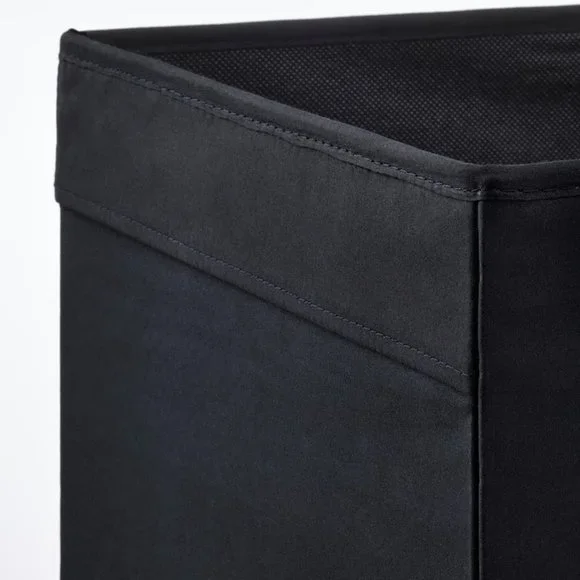 Excellent pre-owned condition!Set of 10.Pet/smoke free home.DRÖNAColor: BlackMeasurements:Width: 13 "Depth: 15 "Height: 13 "This storage box in fabric creates a soft impression – regardless if it’s in the bookshelf or the walk-in closet. It is dimensioned for KALLAX shelving, adding both style and function.A good size for slightly larger things like clothes and media accessories.The box fits perfectly in KALLAX shelf.Easy to pull out and lift as the box has handles.This storage box in fabric is adding both style and function – regardless if it’s in the bookshelf or the walk-in closet. Dimensioned for KALLAX shelving unit and is made of mostly recycled polyester.Fits perfectly in KALLAX shelving unit and other units with shelves that are at least 13¾" deep.Ideal for storing media gadgets, clothes and other things that you use often and want close at hand, but still hidden.The box is easy to pull out since it has two integrated handles in fabric.Helps you organize your things so you can maximize the use of your storage space.Dimensioned to fit KALLAX shelf unit.Material:Main part: 100% Polyester (min. 90% recycled)Insert: Paperboard (min. 30% recycled)Inner fabric: 100% PolypropyleneCare:Clean by vacuuming or use a lint roller.Do not wash/bleach/tumble dry/iron/dry clean.605.084.30Weight: 1 lb 14 oz