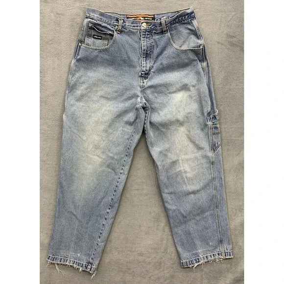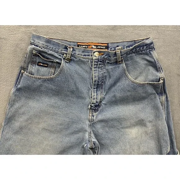 Y2K Vintage LUGZ Carpenter Denim Jeans Men Size 36X29 Thrashed Grunge Stained Preowned item unless stated otherwise. All measurements are taken laying flat. This is to help make sure you get the best fit please take advantage of the measurement photos. If there are any imperfections they will be noted in the photos (ex. rips, tears, holes or spots will be noted in photos.) Please see photos for exact measurements as size may differ from size tag.God bless you and your family. Enjoy!