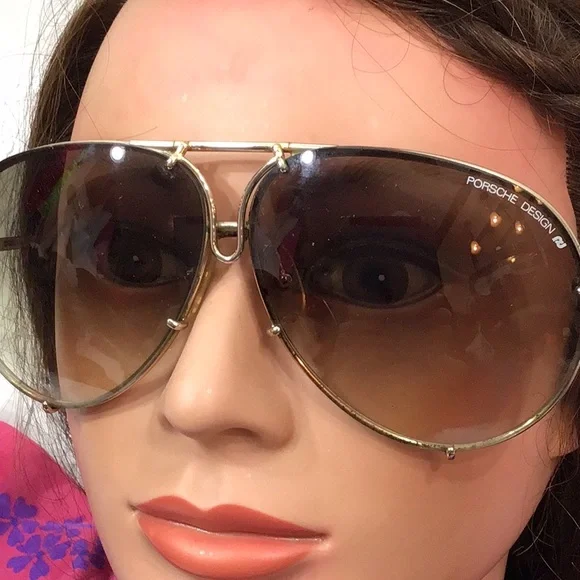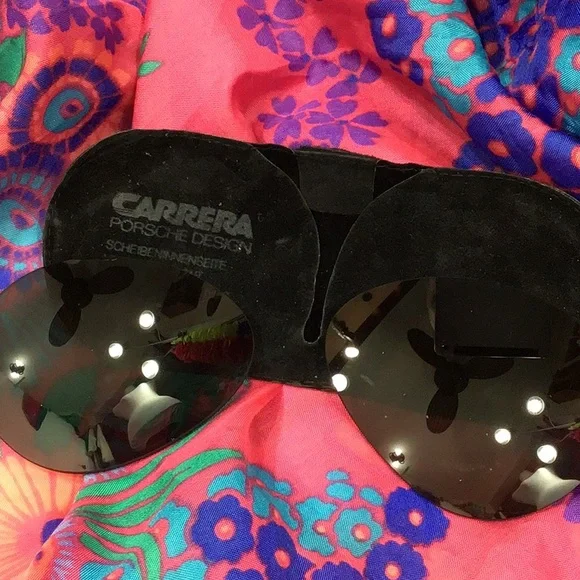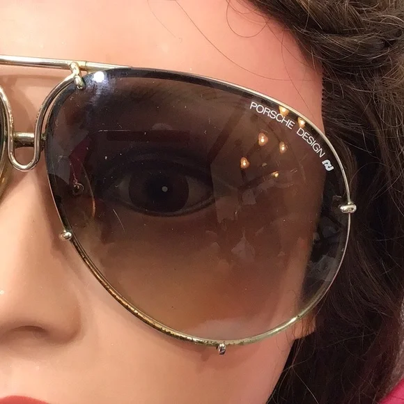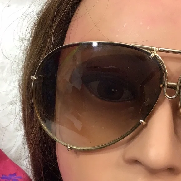 Model 5621, size Large, vintage 1980’s, made in Austria, gold metal frame some tarnish, Porsche logo on lens, I see one small scratch on the left lens, extra set of lenses, aviator style, unisex design, see pic for proportionate size, Carrera Porsche sunglasses, width across 6”, height 2.5”, arm length 5”, typical signs of wear for vintage on arms/nose/frame, GUC, definitely a collector’s item