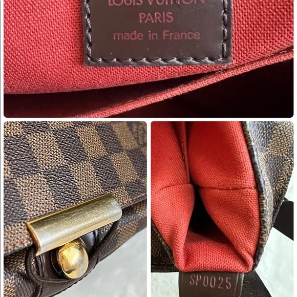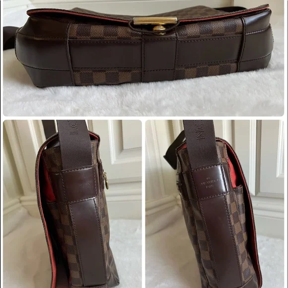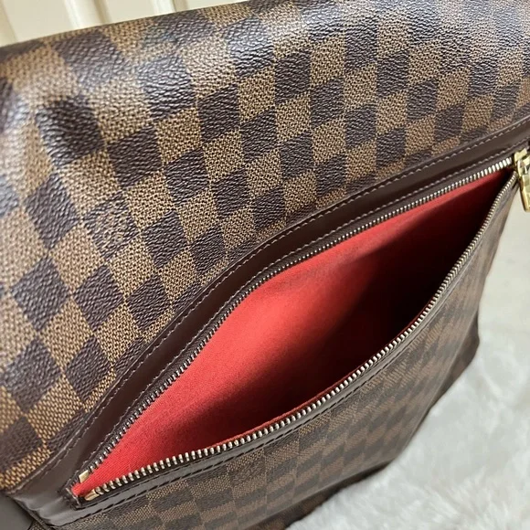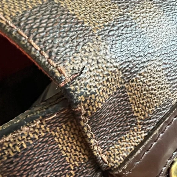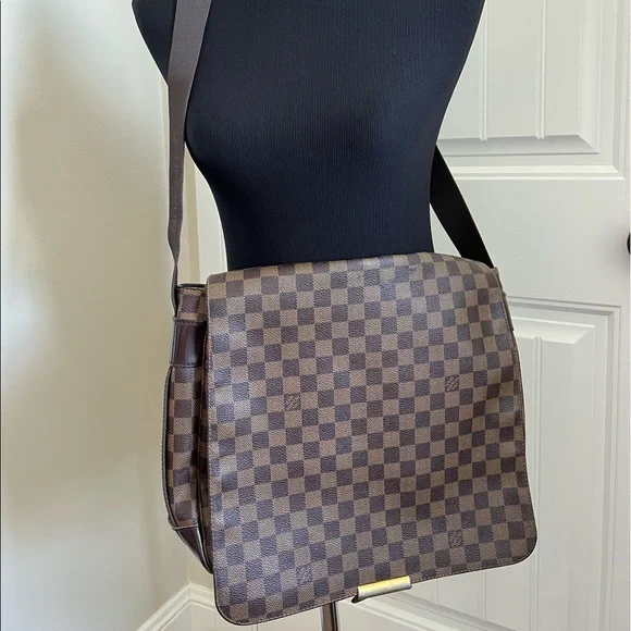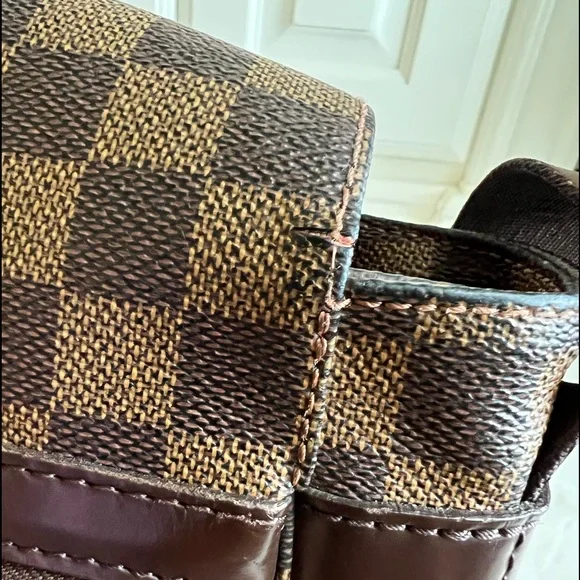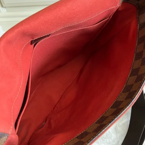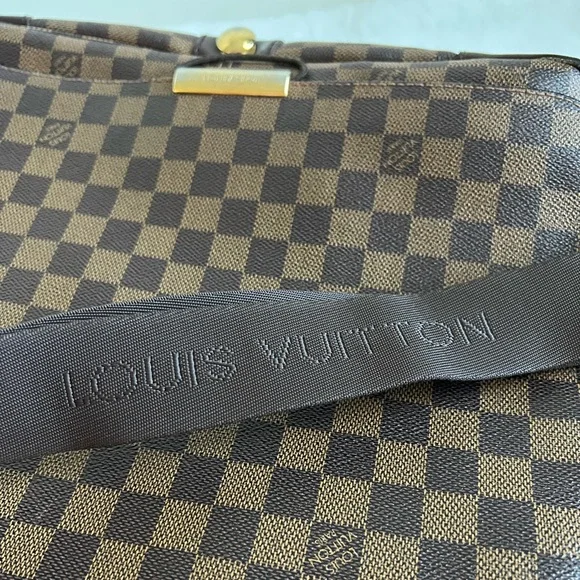 Preloved, in good condition. Guaranteed authentic Louis Vuitton Bastille Messenger/ Crossbody Bag in beautiful Damier Ebene print. Approximately 14” x 4” x 11”. Thick straps are sturdy and adjustable to allow shoulder or crossbody wear. Canvas is vibrant with some marks and discoloration in some areas. There are cracks, about 1/3 inch long on either side of the back flap cover where it folds (see photos). Corners are scuffed/ rubbed but there are no open piping. There are no loose stitches. Hardware is mildly tarnished and scratched. Interior lining shows some fading and wear but there are no holes or rips. There are rubs and very minimal fraying on the edges. There is a hard stain in one corner that I haven’t tried to remove. It is not sticky. Overall, the bag is in good and very usable condition. Made in France; SP0025. No inclusions but I provide a generic dust bag. From a smoke and pet free home. Please check myprofile (About page) for a link to my online shop. All items are crossposted.
