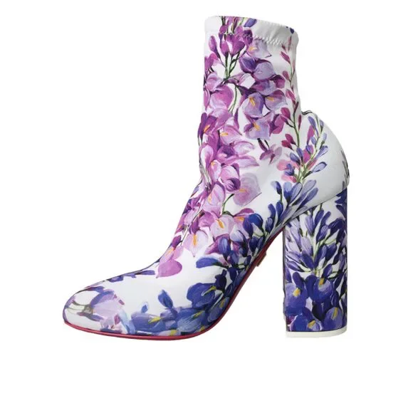 DOLCE GABBANAGorgeous brand new with tags, 100% Authentic Dolce Gabbana floral ankle boots shoes.Model: Ankle boots jerseyColor: White with purple floral printMaterial: Fabric stretchLeather bottom soleLogo detailsMade in ItalySizing: Clothing and shoe sizes have been converted to their closest US size based on universal size charts. Due to the many variables in sizing this may differ from the European size found on the tag or the brand's individual size chart. Please reach out for additional measurement requests or to be provided with the tag size.About Us:We are a small, woman owned business in the beautiful Hudson Valley Region of NY. I am a nurse by trade turned business owner after merging my love of fashion with sustainability in the resale industry.All of our NWT luxury goods are purchased legitimately from our brand partners and come with a 100% Authenticity Guarantee. Items above $500 may also ship to 's authenticity team for inspection prior to delivery.Ships in 3-5 business days so we can package with care. Please allow us a few business days for tracking to update.All offers are either countered or accepted! Affirm payments are available through .Thanks for shopping with us!