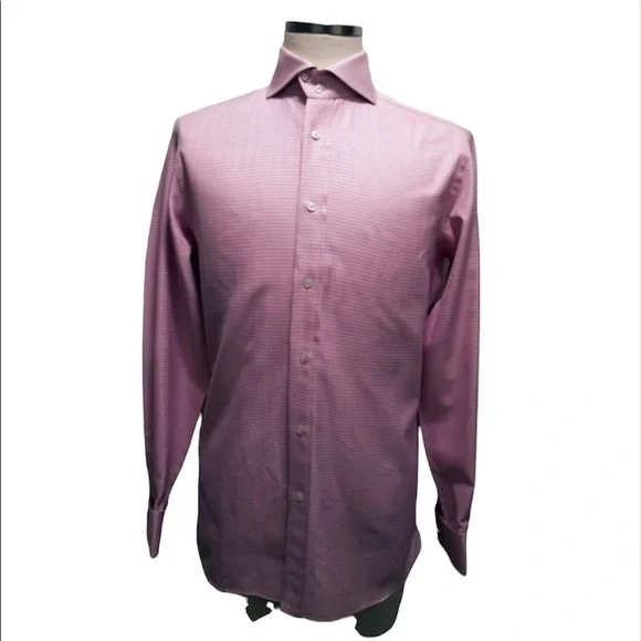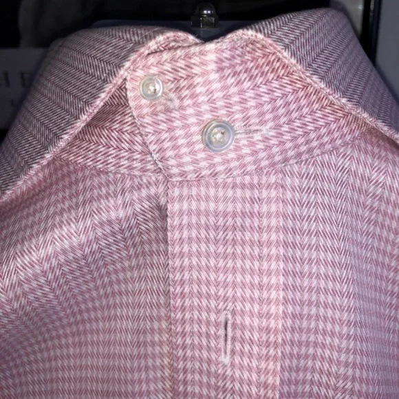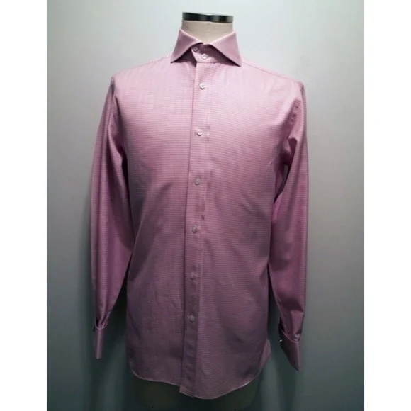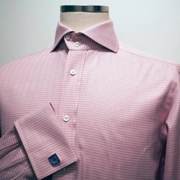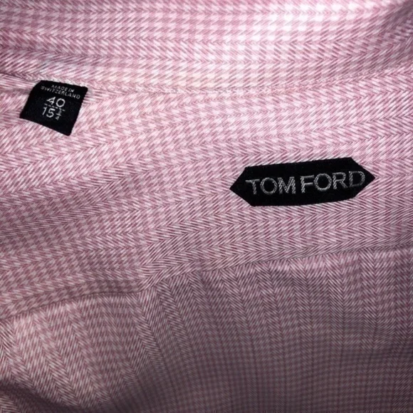 TOM FORD, Pink, Cutaway-Collar, Houndstooth Cotton Shirt.French Cuffs.SIZE 40 EUR/15.75 USTOM FORD's shirt is an easy way to work pattern into your formal suiting - it's woven in houndstooth but almost appears solid from afar. Cut from soft cotton, it has a cutaway collar fitted and is finished with mother-of-pearl buttons. Made in Switzerland .