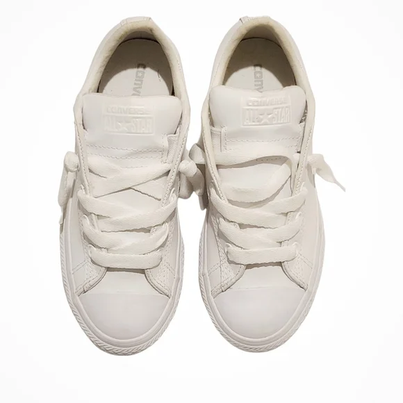 Converse Chuck Taylor White Leather All-Star Street Slip-on Lace up Sneakers Size 2 US,33.5 EUR,1.5 UK,20.5 cmColor: whiteBrand new without tags or box, no flaws, wear, stains, or scuffsLeather upperLace-up frontSlip-on entryCushioned insoleRubber traction outsoleSee pictures for details If you have any questions, send me a message See anything else in my closet and add it to your bundle.The items will all ship together at one shipping cost.Same day shipping when possible via Priority Mail Smoke-free home