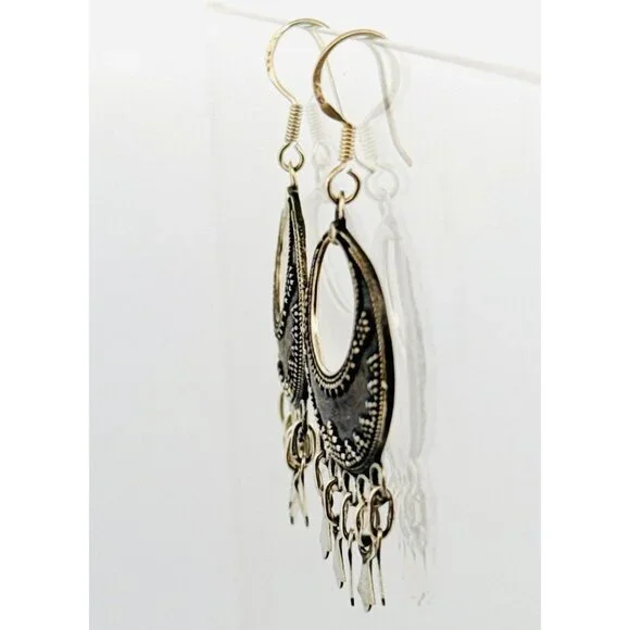 Vintage Estate Bali Drop Dangle Earrings, Sterling Silver 925, Artisan Hook Design, 7.2 Grams, Marked 925Item Description: Discover the elegance of these stunning Vintage Estate Bali Drop Dangle Earrings crafted from high-quality Sterling Silver 925. These exquisite earrings feature a delicate hook design, showcasing the intricate artistry of Balinese craftsmanship. Weighing 7.2 grams, these earrings are both lightweight and substantial, making them perfect for everyday wear or special occasions. Marked 925, they guarantee authenticity and timeless appeal. Ideal for jewelry collectors and lovers of unique, artisan pieces, these dangle earrings add a touch of sophistication to any outfit. Perfect as a gift or a cherished addition to your jewelry collection!Features:• Vintage Estate Bali Drop Dangle Earrings, Sterling Silver 925, Artisan Hook Design, 7.2 Grams, Marked 925Condition: Pre-Owned Phenomenal Preowned Condition