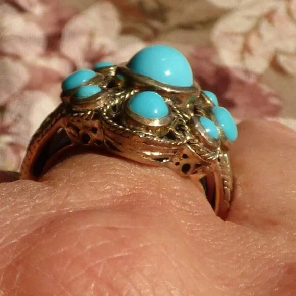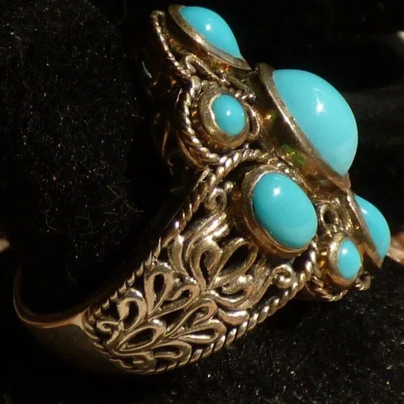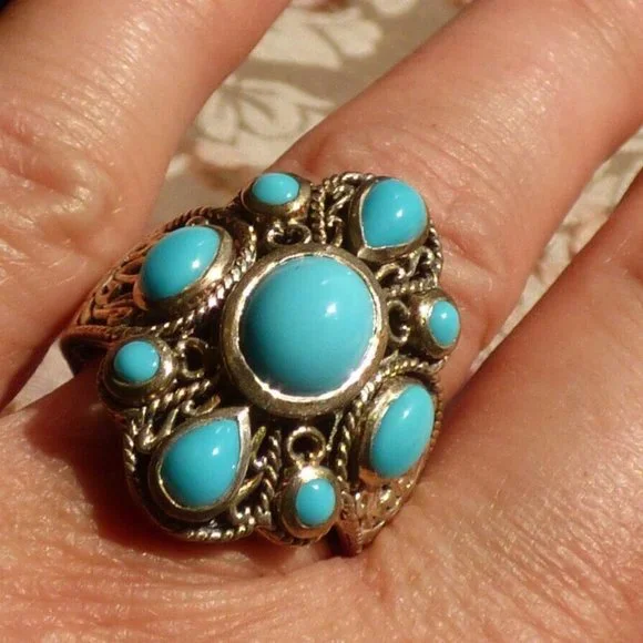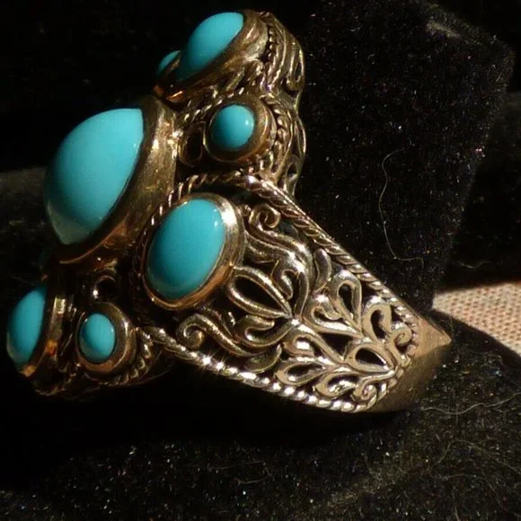 DESIGN DETAIL: Collection (Artisan Jewelry by Samuel B), Style (Ring), Precious Metal (Sterling Silver), Average Weight (9.81g), Number of Gemstones (9), Total Carat Weight (2.97Cts)SLEEPING BEAUTY TURQUOISE: Origin (USA), Set (Bezel), Shape (Oval), Size (8.00mm x 10.00mm), Quantity (1), Weight (1.49cts)SLEEPING BEAUTY TURQUOISE: Origin (USA), Set (Bezel), Shape (Round), Size (3.00mm x 3.00mm), Quantity (4), Weight (0.32cts)SLEEPING BEAUTY TURQUOISE: Origin (USA), Set (Bezel), Shape (Pear), Size (4.00mm x 6.00mm), Quantity (2), Weight (0.56cts)SLEEPING BEAUTY TURQUOISE: Origin (USA), Set (Bezel), Shape (Oval), Size (4.00mm x 6.00mm), Quantity (2), Weight (0.60cts)LIMITED EDITION: 1 OF 65 PIECES!!Tried on only. Comes with Certificate.